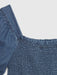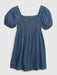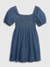 Kids Smocked Puff Sleeve Denim Dress with Washwell