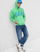 - Hooded neckline with drawcords.