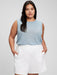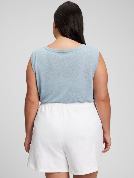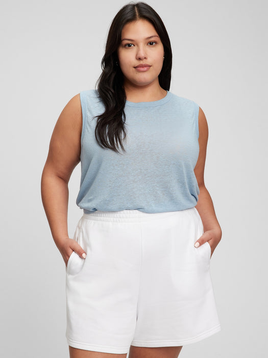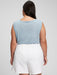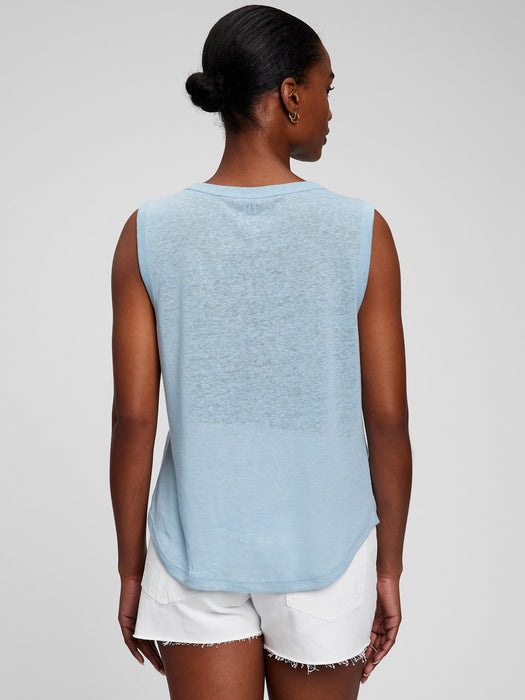 Linen Blend Muscle Sleeveless T-Shirt - blue ice