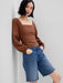Linen-Blend Puff Sleeve Top