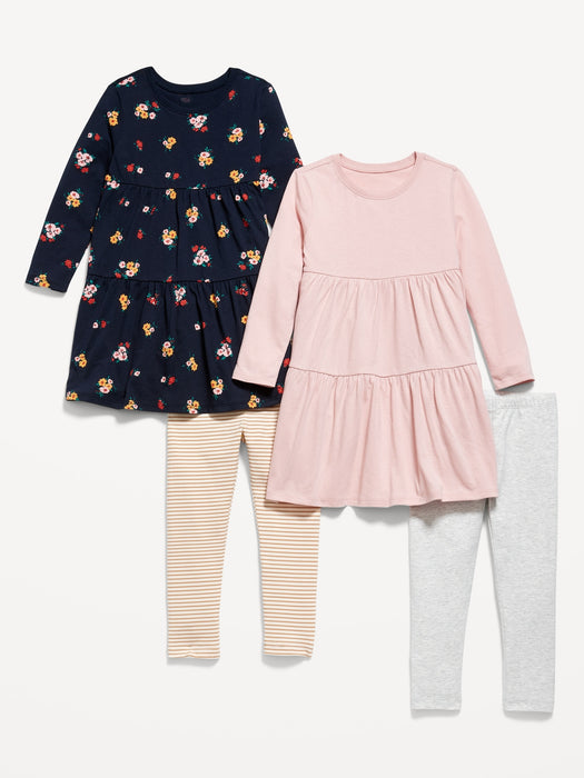 Long-Sleeve Dress and Leggings 4-Pack for Toddler Girls