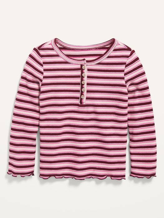Long-Sleeve Lettuce-Edge Henley T-Shirt for Toddler Girls