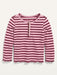 Long-Sleeve Lettuce-Edge Henley T-Shirt for Toddler Girls - Red