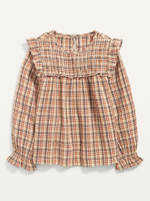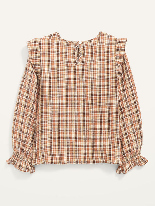 Long-Sleeve Ruffle Double-Weave Top for Girls