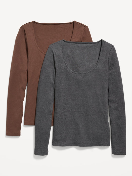 Long-Sleeve Slim-Fit Rib-Knit T-Shirt 2-Pack for Women
