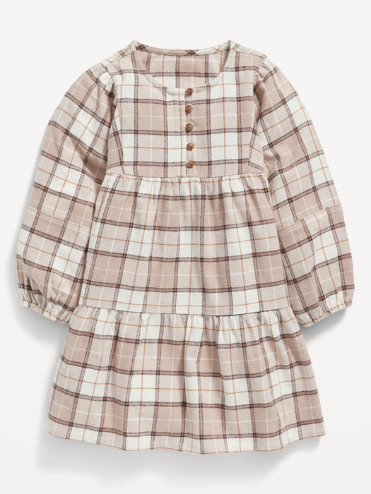 Long-Sleeve Tiered Flannel Button-Front Dress for Toddler Girls