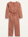 Long-Sleeve Twill Utility-Pocket Jumpsuit for Girls