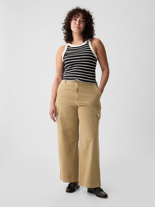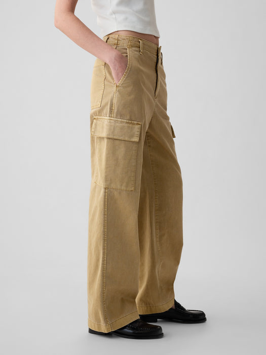 Mid Rise Loose Khaki Cargo Pants