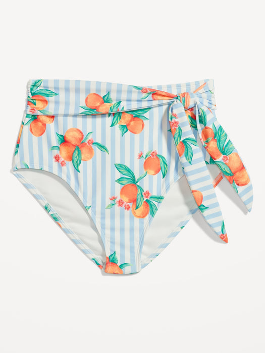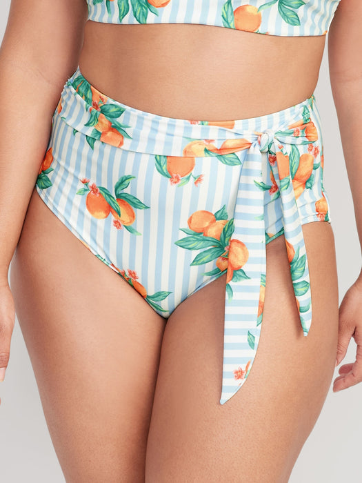 Matching High-Waisted Tie-Waist Bikini Swim Bottoms for Women