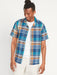 Matching Plaid Linen-Blend Short-Sleeve Camp Shirt for Men - Blue