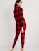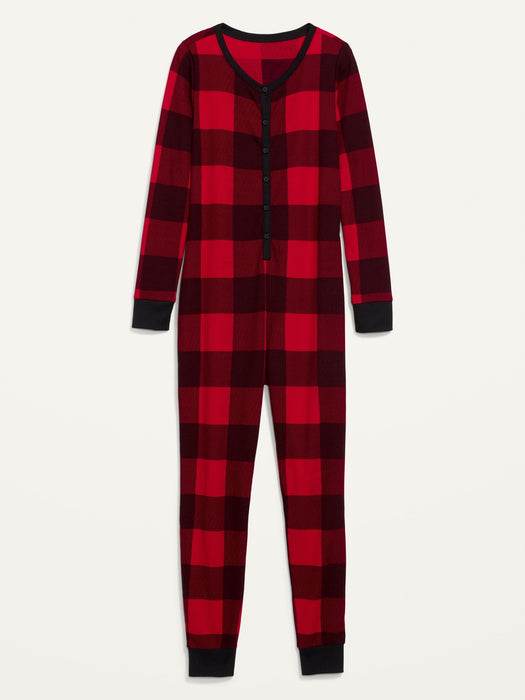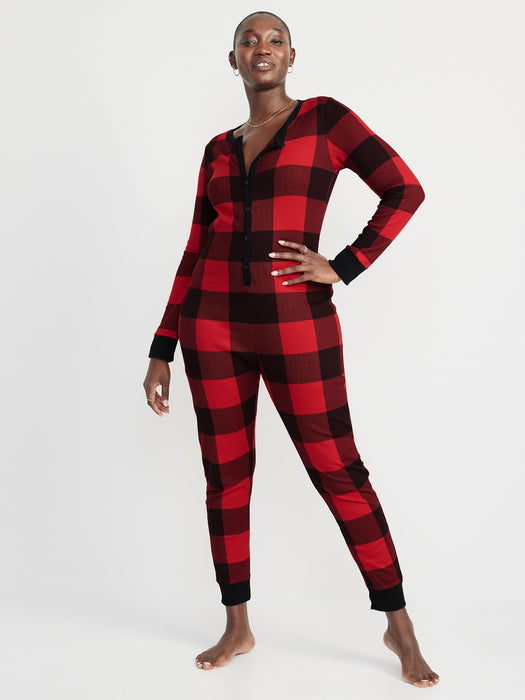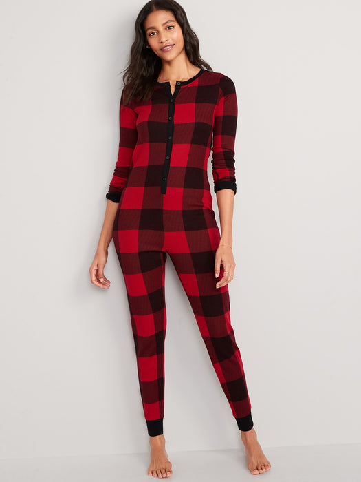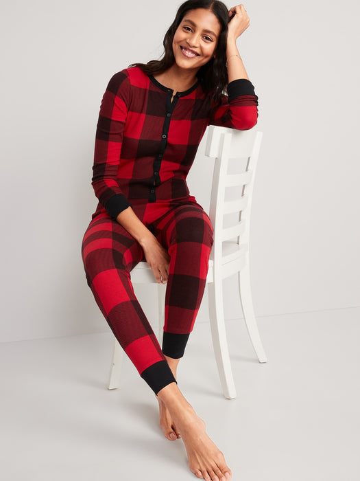 Matching Printed Thermal-Knit One-Piece Pajamas for Women