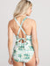 - Plunge V-neck, with cross-back spaghetti straps that tie at cutout back.