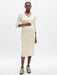 Choose your maternity size based on your pre-pregnancy size. Straight silhouette with a snug fit. Hits below the knee.
