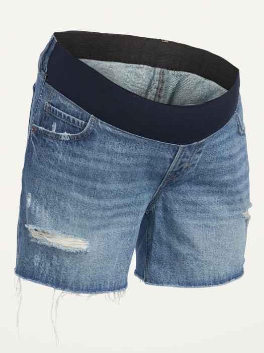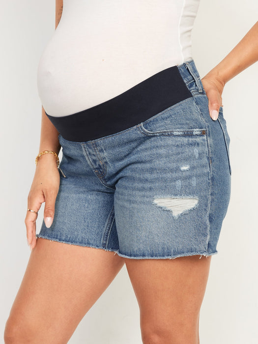 Maternity Front Low Panel Slouchy Straight Jean Cut-Off Shorts -- 5-inch inseam