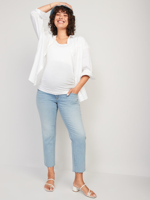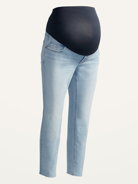 Maternity Full Panel Boyfriend Straight Cut-Off Jeans