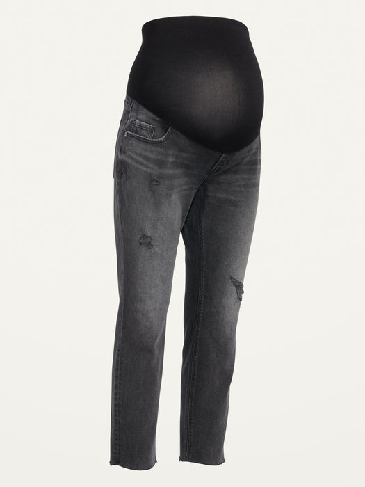 Maternity Full Panel Boyfriend Straight Ripped Black Jeans