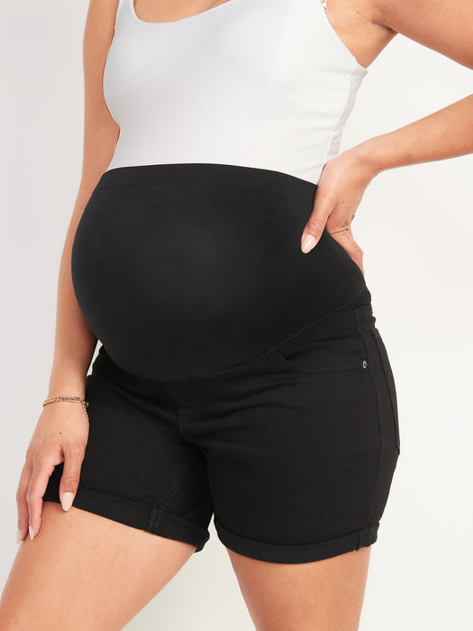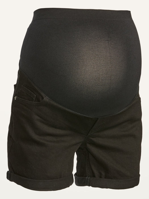 Maternity Full Panel O.G. Straight Black Jean Shorts -- 5-inch inseam