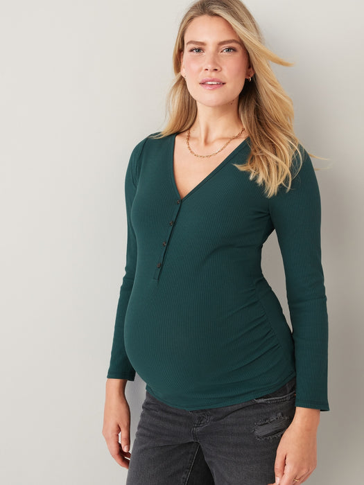 Maternity Long-Sleeve Rib-Knit Henley T-Shirt