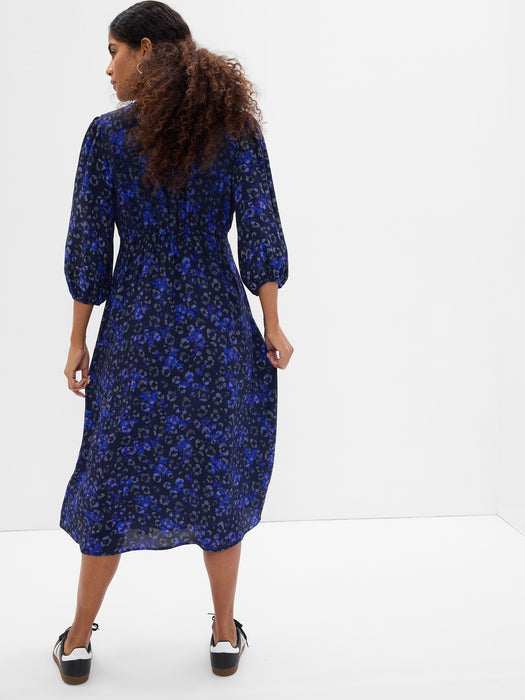 Maternity Puff Sleeve Smocked Midi Dress