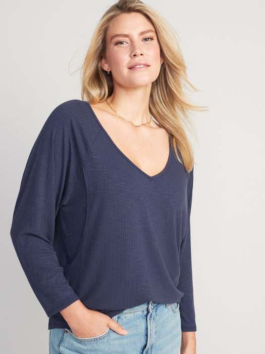 Oversized Maternity Rib-Knit V-Neck Nursing Tunic Top