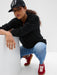 Choose your maternity size based on your pre-pregnancy size. Straight silhouette with an easy fit. Hits at the hip.