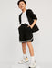 - Retro striped tape trim at leg openings and vented sides.
