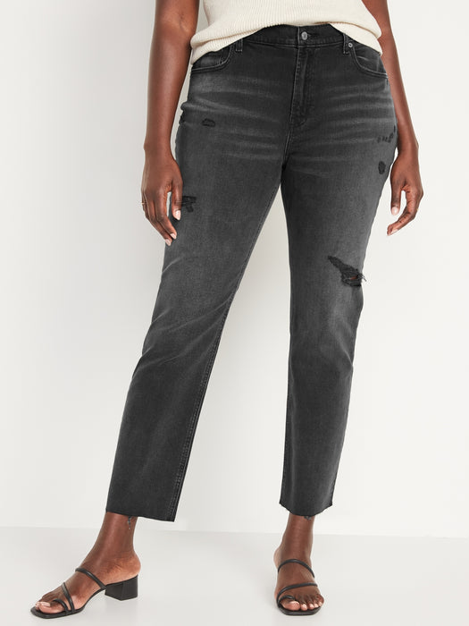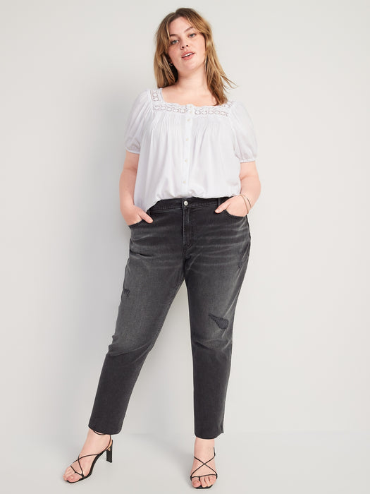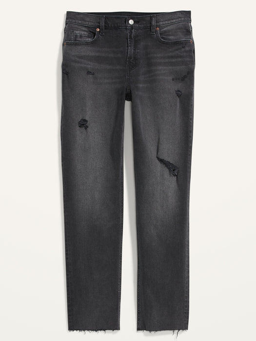 Mid-Rise Boyfriend Straight Ripped Black Jeans for Women