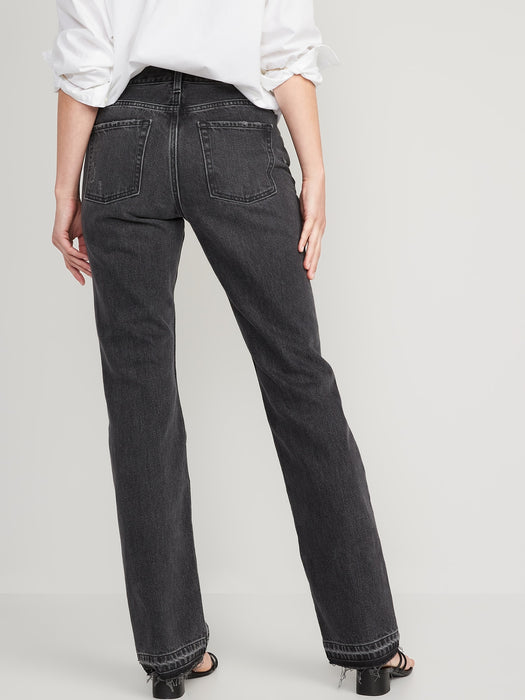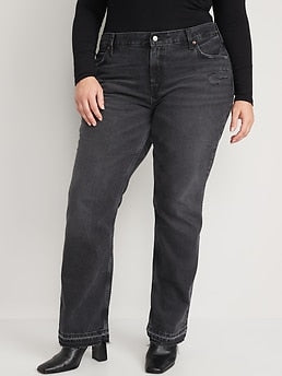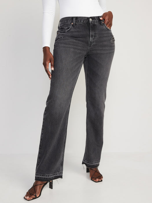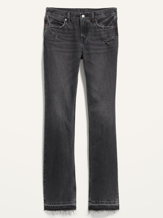 Mid-Rise Slouchy Boot-Cut Black Non-Stretch Cut-Off Jeans for Women