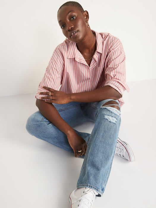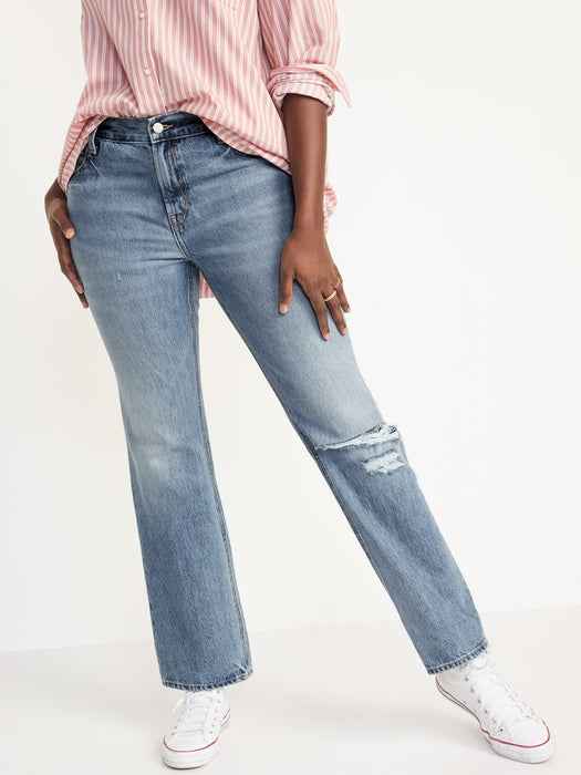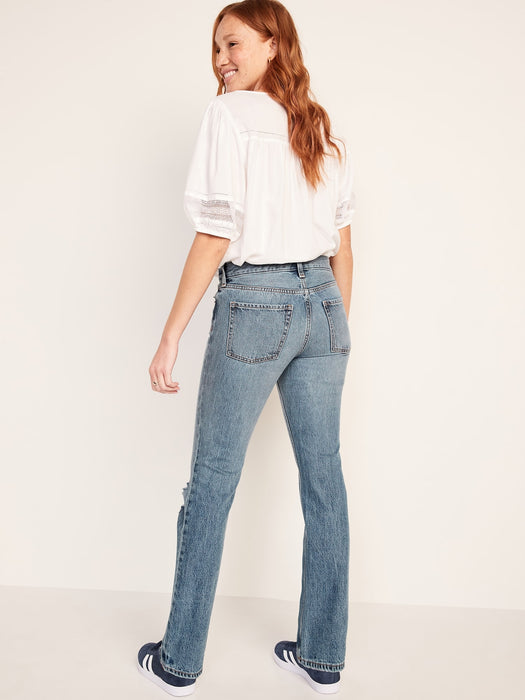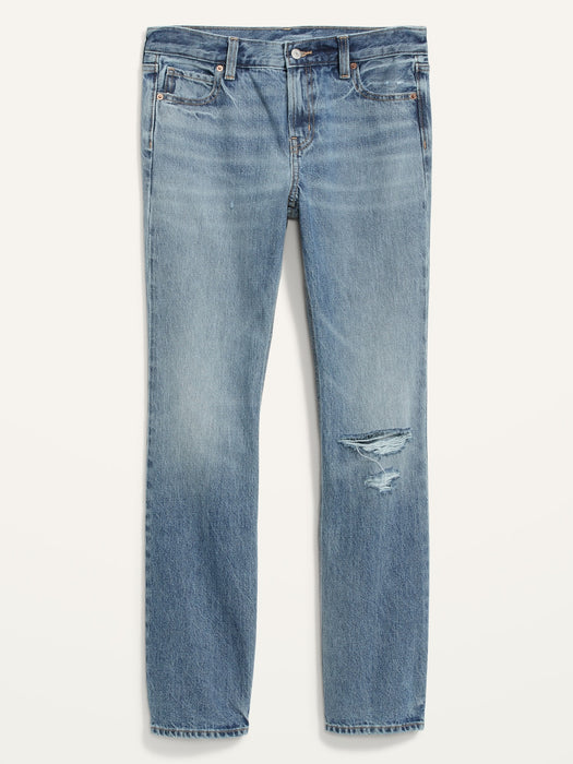 Mid-Rise Slouchy Boot-Cut Ripped Non-Stretch Jeans for Women