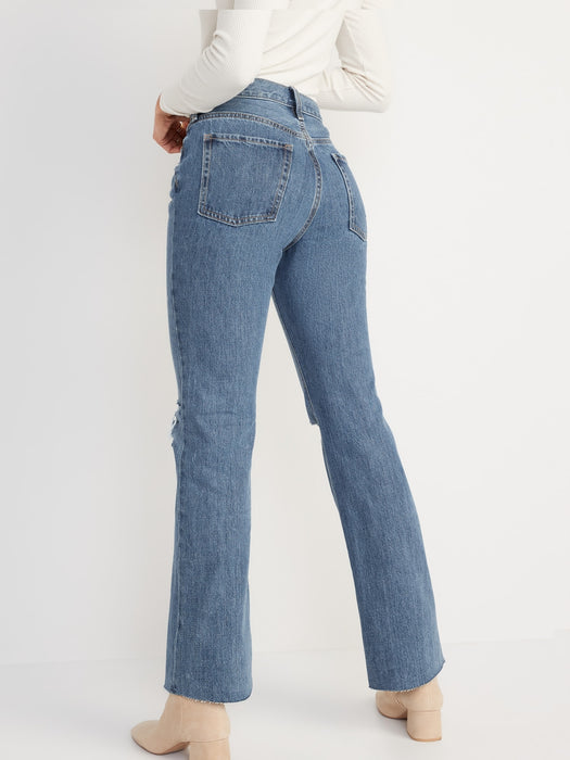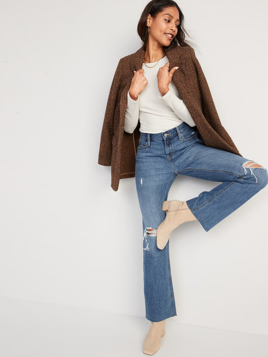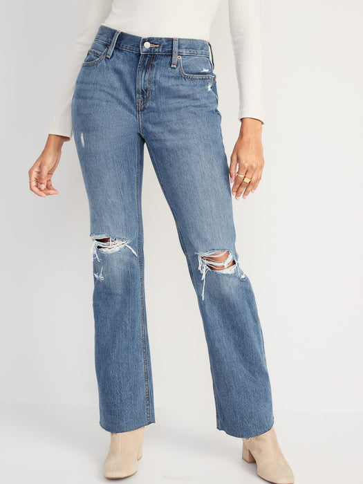 Mid-Rise Slouchy Boot-Cut Ripped Non-Stretch Jeans for Women