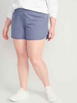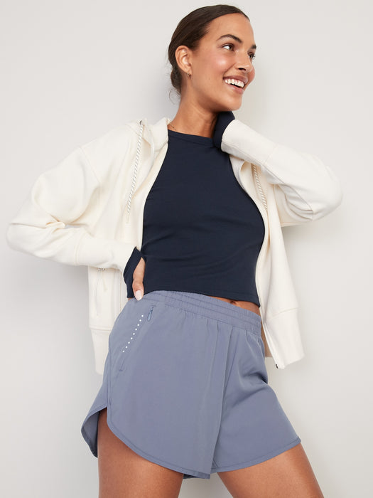 Mid-Rise StretchTech Dolphin-Hem Run Shorts for Women -- 4-inch inseam
