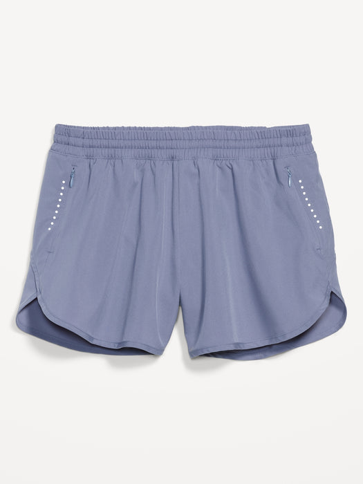 Mid-Rise StretchTech Dolphin-Hem Run Shorts for Women -- 4-inch inseam - Blue