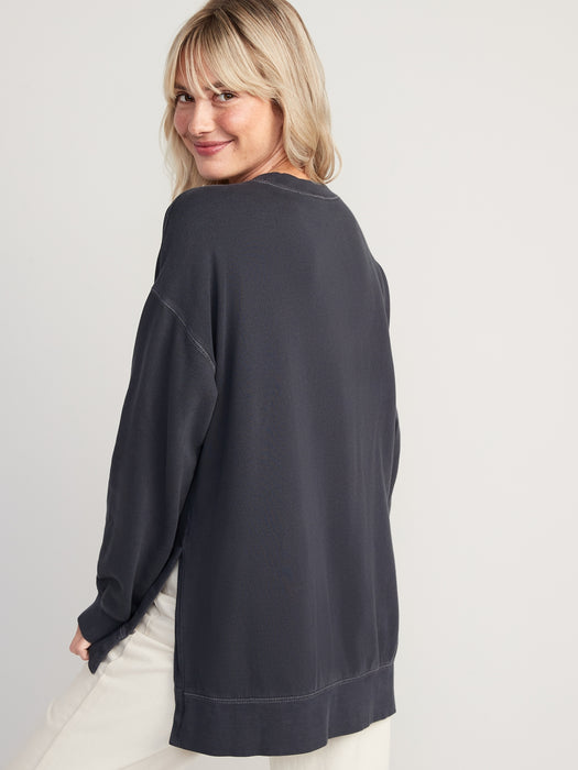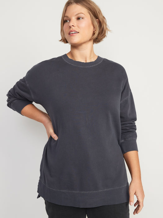 Oversized Boyfriend Garment-Dyed Tunic Sweatshirt for Women