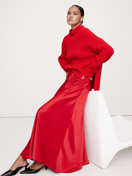 - We cut this oversized sweater with high side slits at the hem, knitting it in a chunky, wool yarn so it's ideal for layering through the coldest seasons. We also employed a half-cardigan stitch to create a beautifully ribbed texture.