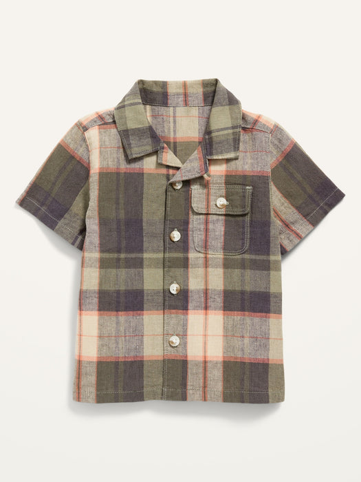Plaid Linen-Blend Short-Sleeve Camp Shirt for Baby - Green