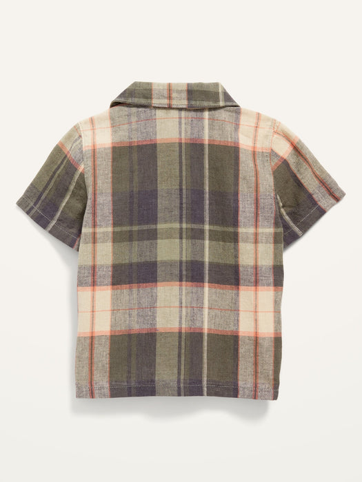 Plaid Linen-Blend Short-Sleeve Camp Shirt for Baby