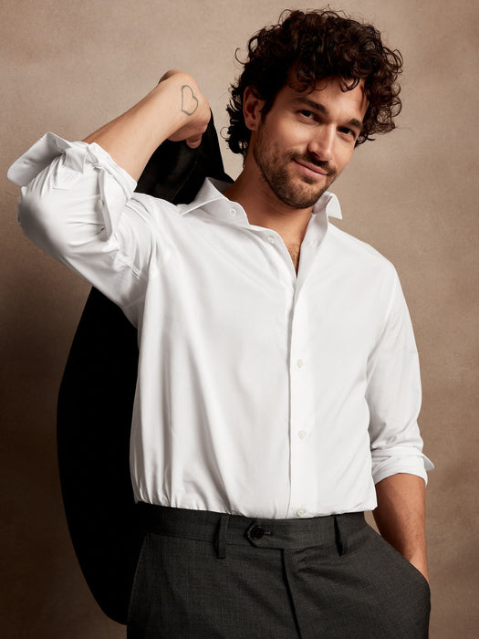 Premium Poplin Dress Shirt with Cutaway Collar - White