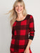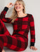 Printed Thermal-Knit Long-Sleeve Pajama Top for Women - Red