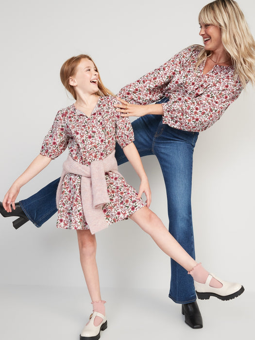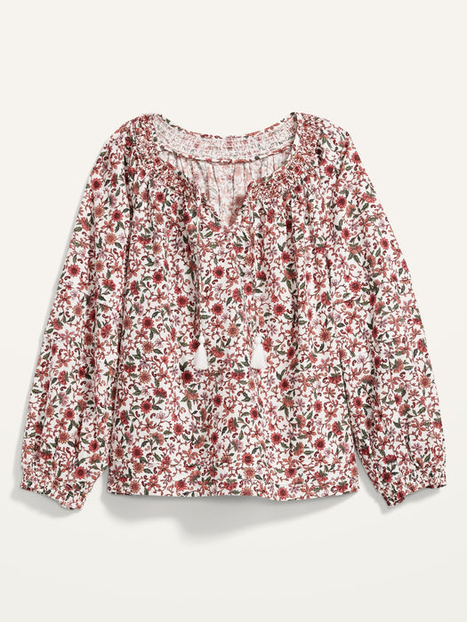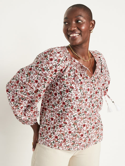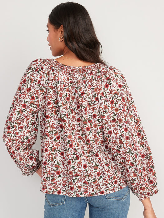 Puff-Sleeve Floral Smocked Poet Swing Blouse for Women
