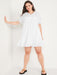 Puff-Sleeve Tie-Neck Eyelet Mini Swing Dress for Women