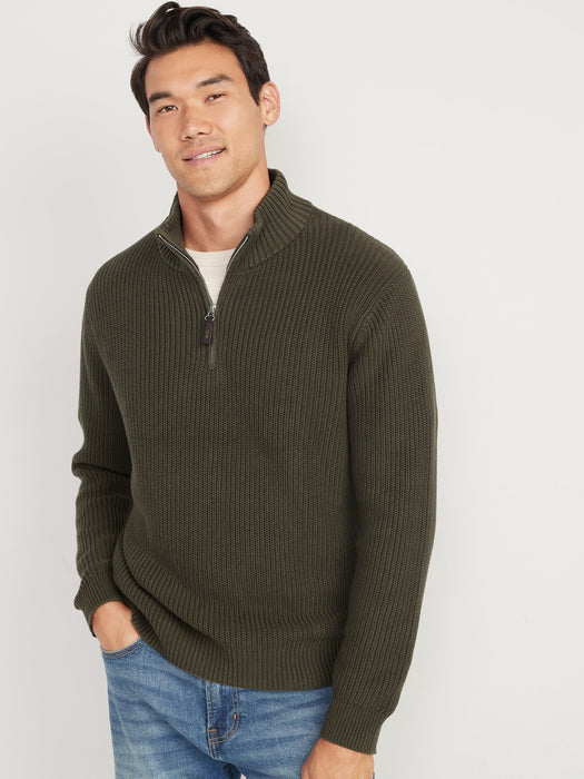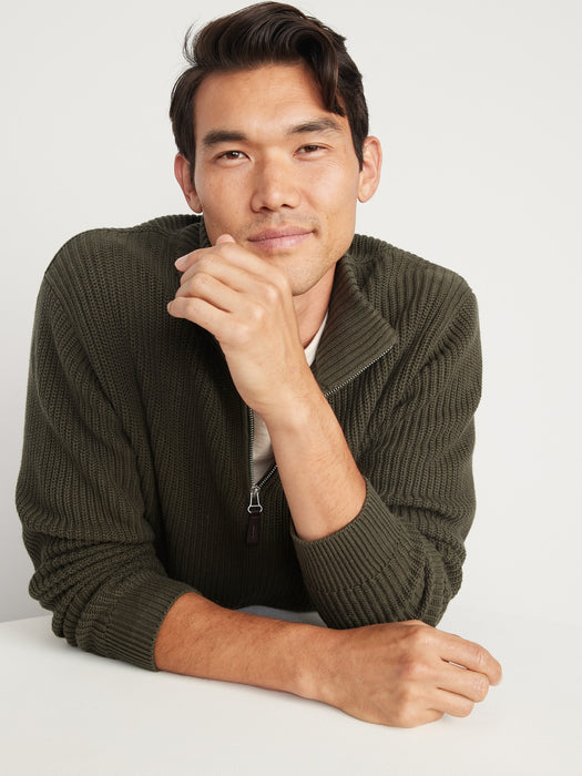 Quarter-Zip Mock-Neck Sweater for Men - Green