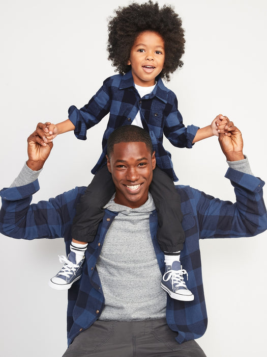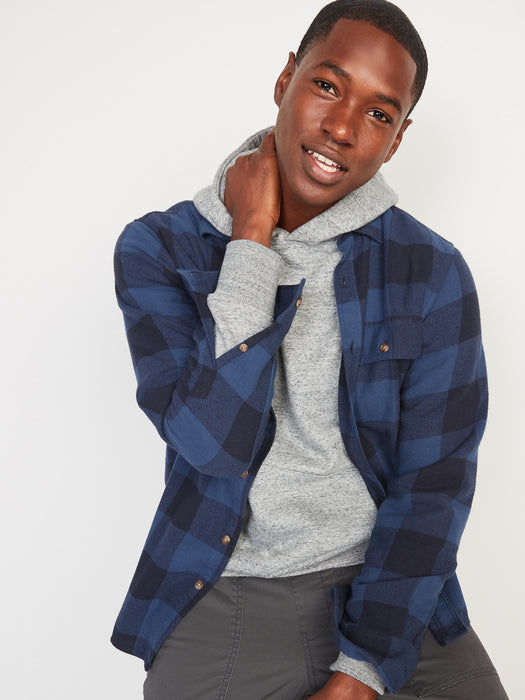 Regular-Fit Plaid Double-Brushed Flannel Shirt for Men