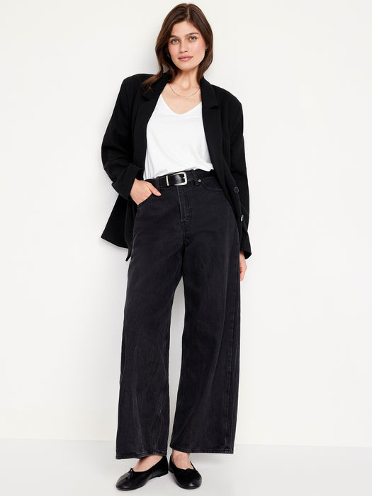 relaxed fit hits below waist models are approx. 5'9" and wear sizes s (4), l (12) and xl (18)