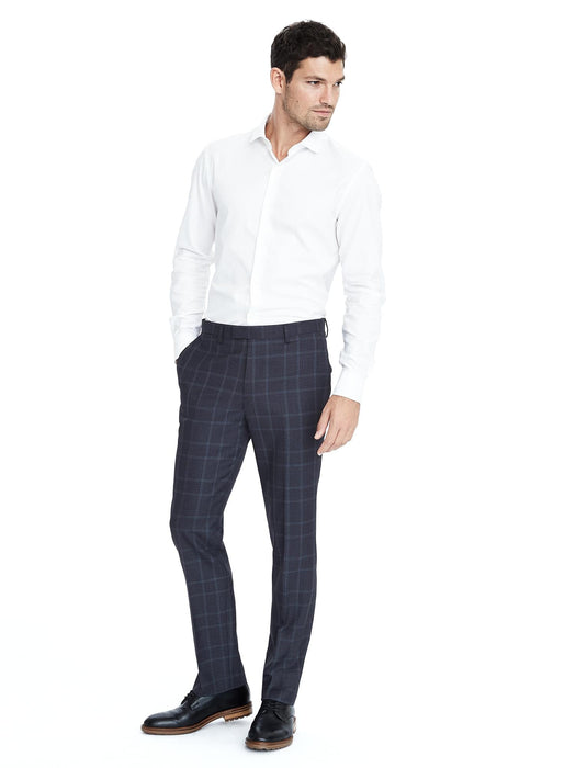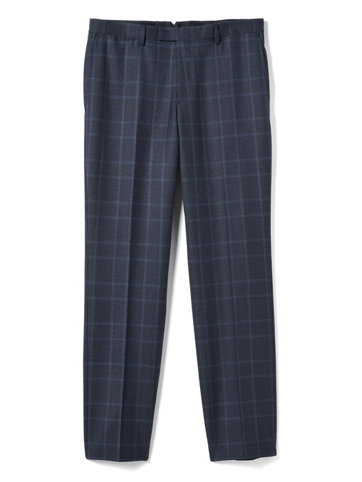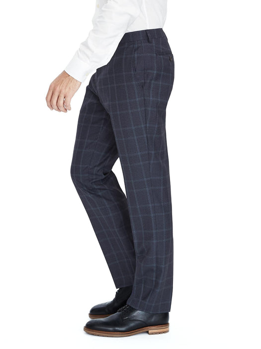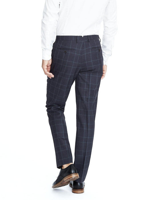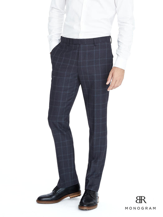 Slim Monogram Navy Plaid Wool Suit Trouser - Navy
