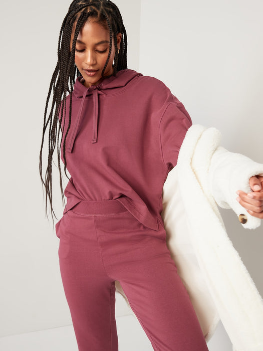 - Long drop-shoulder sleeves, with elasticized rib-knit cuffs.