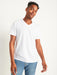 Relaxed fit through body. Men's V-neck T-shirt hits below waist. Model is approximately 6'1" and wears a size M.