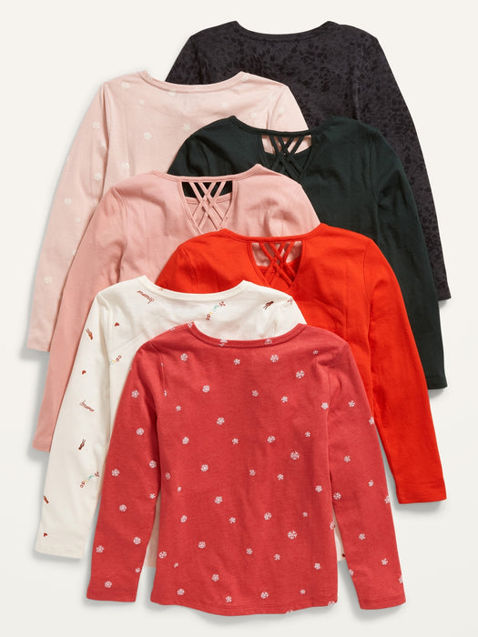 Softest Long-Sleeve Lattice-Back T-Shirt 7-Pack for Girls