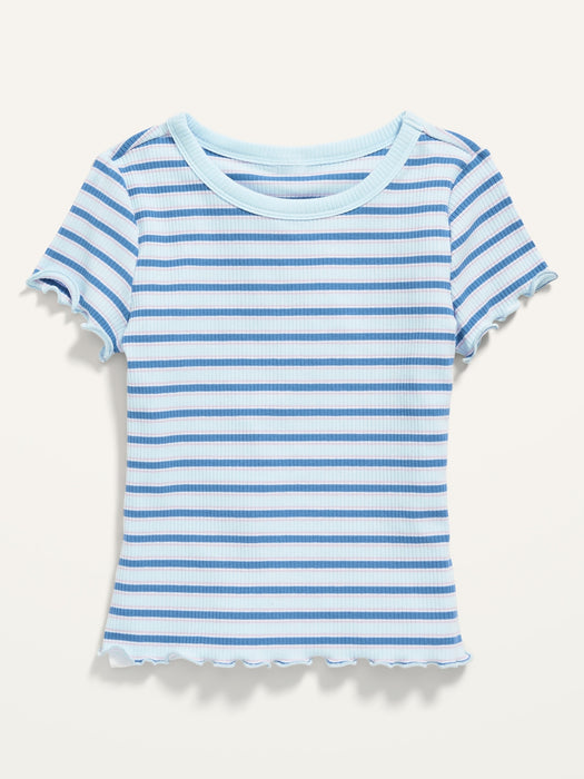 Striped Rib-Knit Lettuce-Edge T-Shirt for Girls