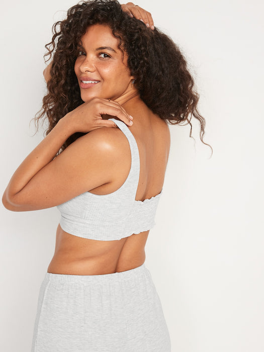 Sunday Sleep Rib-Knit Smocked Bralette Top for Women - Gray