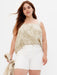 Tie-Back Babydoll Tank Top - beige tiger print